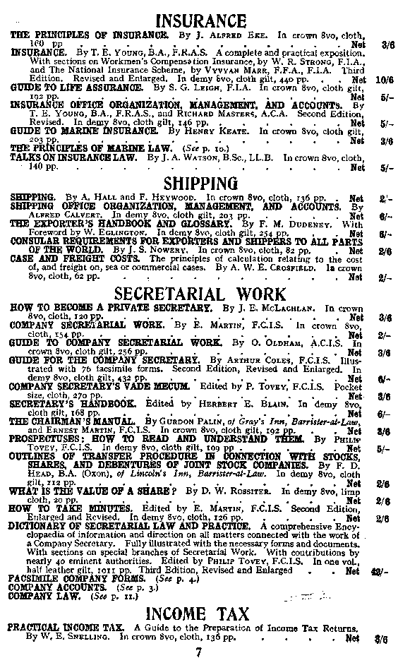 Advertisement: PITMAN HANDBOOKS: INSURANCE, SHIPPING, INCOME