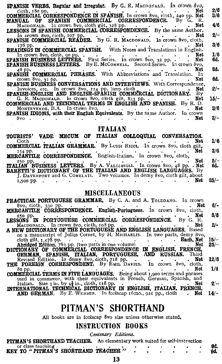 Advertisement: PITMAN HANBOOKS: ITALIAN, SHORTHAND