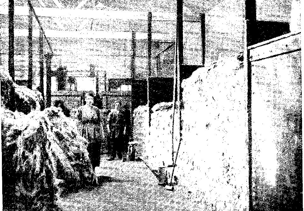 Most of the baling presses used in the press houses in the Calcutta district are made in Liverpool, and are provided with the most efficient type of pumps and mechanical parts. Fig. 5 illustrates one of these huge presses with a number of natives in close proximity. Two or three distinct operations are conducted simultaneously by different groups of operatives, and ingenious mechanism is essential for the successful prosecution of the work. Two such presses as that illustrated in Fig. 5 are capable, under efficient administration, of turning out 130 bales of 400 lbs. each in one hour. The fibre is compressed into comparatively small bulk by hydraulic pressure equal to 6,000 lbs. per square inch, and no packed bale must exceed in cubical capacity 11 cubic feet after it leaves the press; it is usual for freight purposes to reckon 5 bales or 55 cubic feet per ton. (Now changed to 50 cubic feet.)