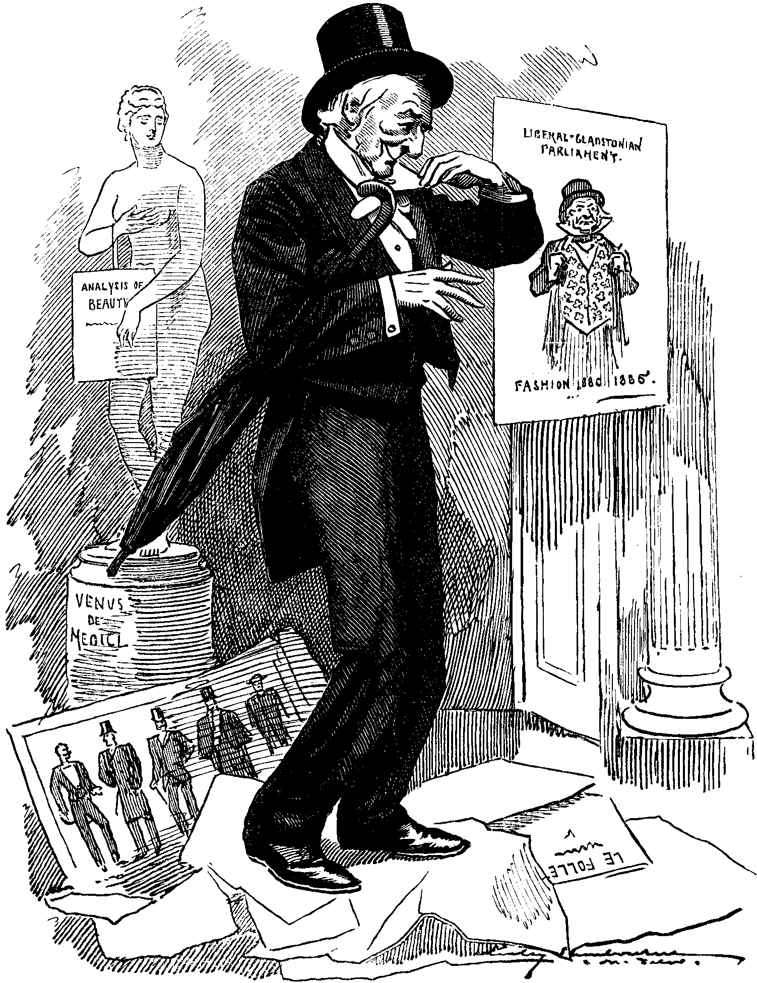 Piles of correspondence by morning post! What can this be about? Ah! I remember now! Nineteenth Century just out, of course. Glad I thought of starting "Society of Universal Beneficence." Will keep me going after excitement of Midlothian. Wonder how many people will "bind themselves to give away a fixed proportion of their income,"—also what the proportion will be, if they do. Don't know if I should have thought of it, if it hadn't been for General BOOTH's book. Remarkable person, the General. Perhaps he'd order his Army to vote solid for Home Rule, if I offered him a place in my next Cabinet? Must sound him on the subject. Salvationists quite a power now. Can't cut Field-Marshal VON BOOTH up in a Magazine, so must cut him out instead!