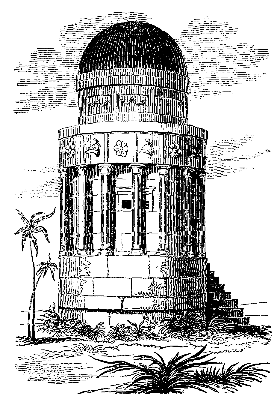 The form of the arch will be recognised as strictly of the ecclesiastical architectural character; and, with reference to this style, we may observe that "the ecclesiastical residence, the dwelling of the mitred abbot with his train of shaven devotees, or of the princely bishop and humbler priest, naturally was designed to correspond with the consecrated edifice round which these buildings were usually grouped; and hence the architecture of the abbey or priory is essentially of a piece with that of the cathedral." Reverting to the chimney-piece, it should be added that formerly [pg 419] both on the continent, as well as in England, fire-places and chimneys were decorated with architectural ornaments, as columns, entablatures, statues, &c., like the entrance to a small temple; now they are mostly made of marble, and more for the office of sculptural decoration than for the orders of architecture.