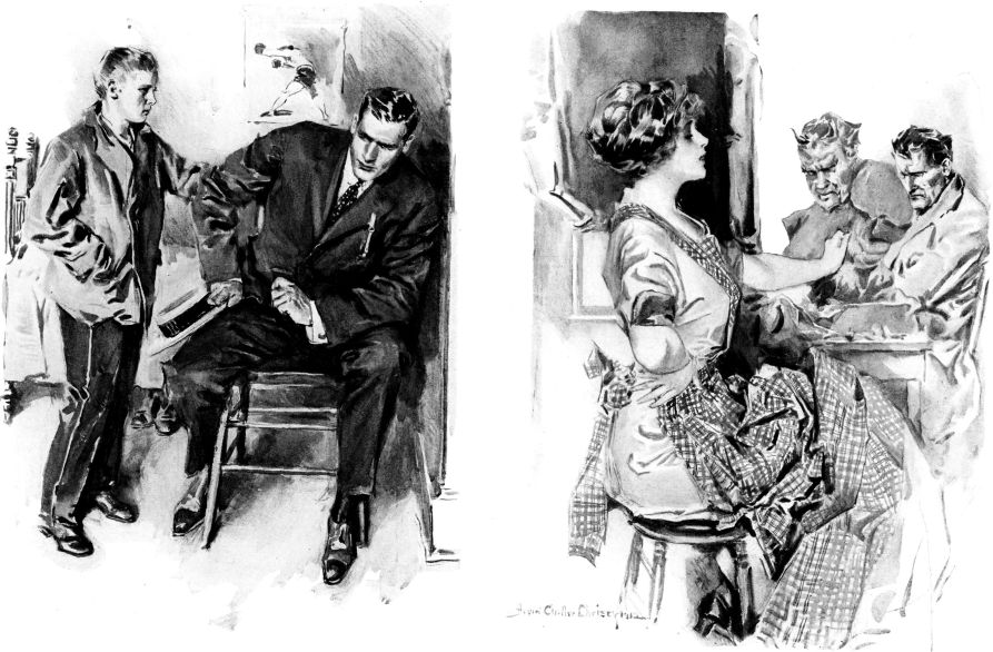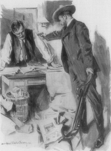 "You shall have them," said the beggar shortly. He pointed to a glazed door across which was printed in gilt letters: