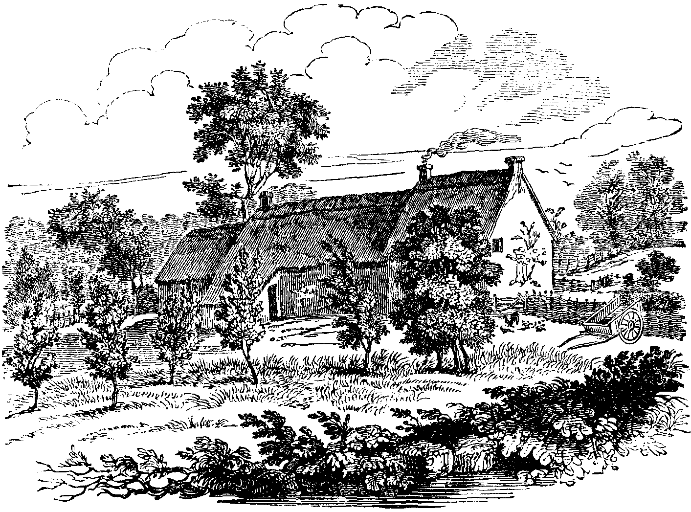 The above cottage stands in the village of Cherryburn, near Ovingham, on the banks of the Tyne, about twelve miles west of Newcastle.