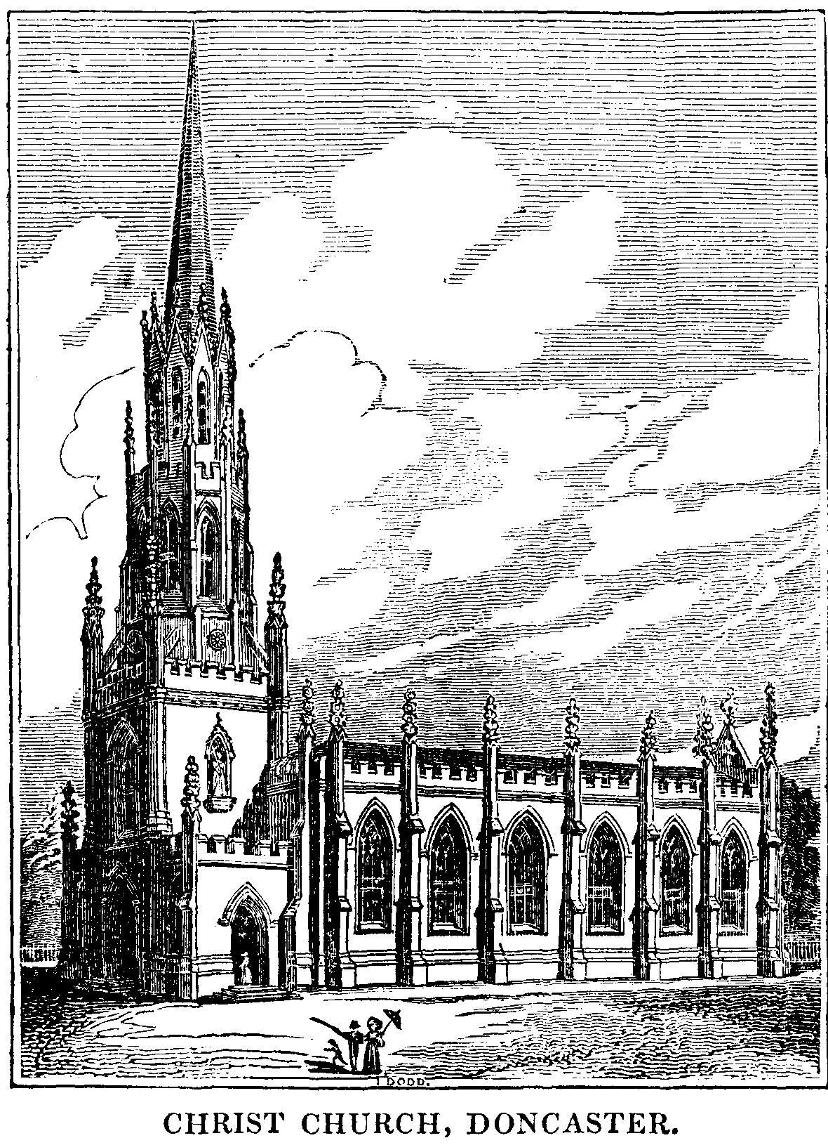 The town of Doncaster has been long celebrated for its beauty and cleanliness, for its striking approach from the south, its magnificent Grand Stand, and celebrated Race Course, its public buildings, its venerable Gothic Church, and stately tower; and latterly, by the erection of a beautiful Gothic Church, with an elegant spire, giving an additional feature to the town from every approach.