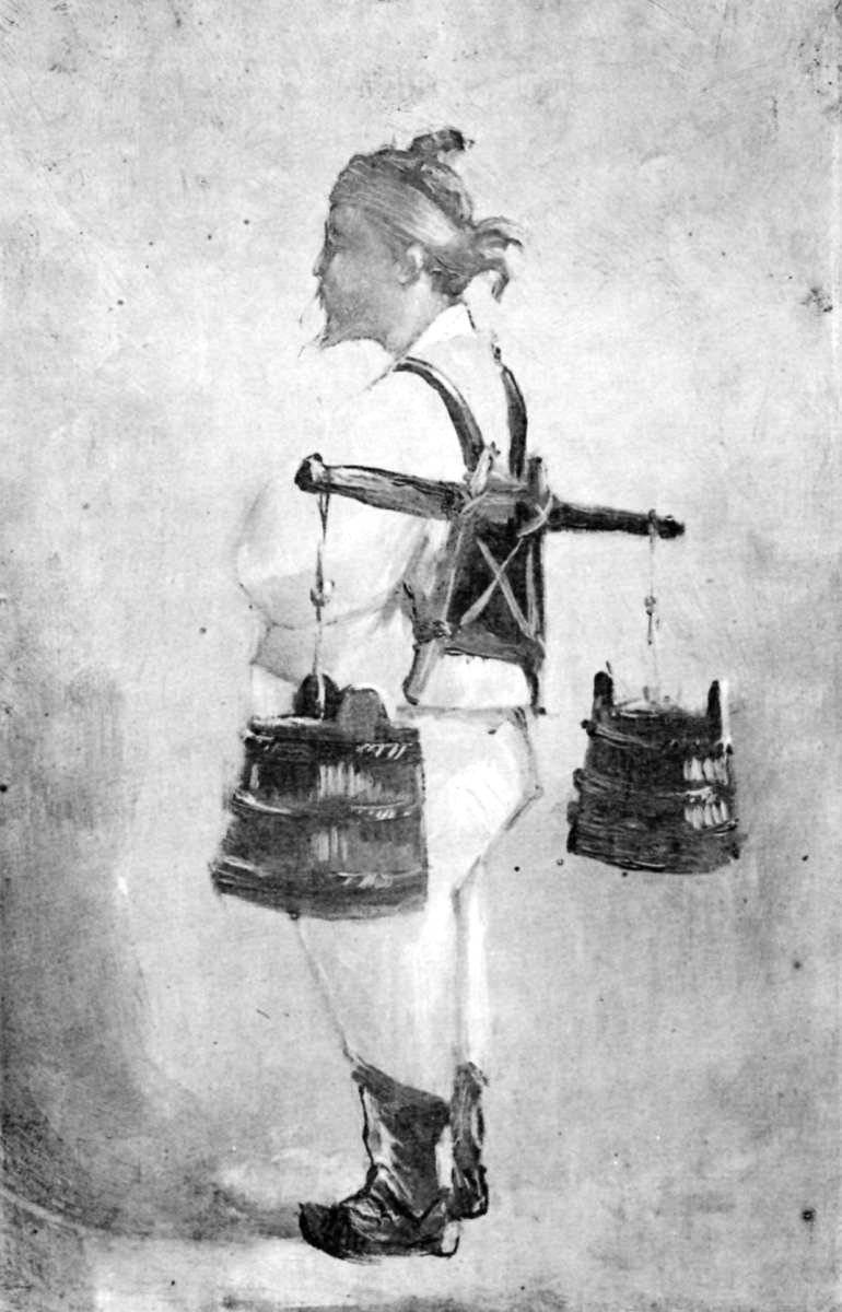 I left Chemulpo on January 2nd, but instead of making use of the minuscule ponies, I went on foot, sending my baggage on in advance on a pack-saddle on one of them. I was still suffering considerably from an accident I had sustained to my foot among the hairy folk of the Hokkaido, and I thought that the long walk would probably be beneficial to me, and would take away some of the stiffness which still remained in my ankle. At a short distance from the port I came to a steep incline of a few hundred yards, and crossing the hill-range which formed the background to Chemulpo as one looks at it from the sea, I soon descended on the other side, from which point the road was nearly level all the way to the capital. The road is not a bad one for Corea, but is, of course, only fit for riding upon; and would be found almost of impossible access to vehicles of any size. The Japanese had begun running jinrickshas, little carriages drawn by a man, between the capital and the settlements; but two, and even three men were necessary to convey carriage and passenger to his destination, and the amount of bumping and shaking on the uneven road was quite appalling.