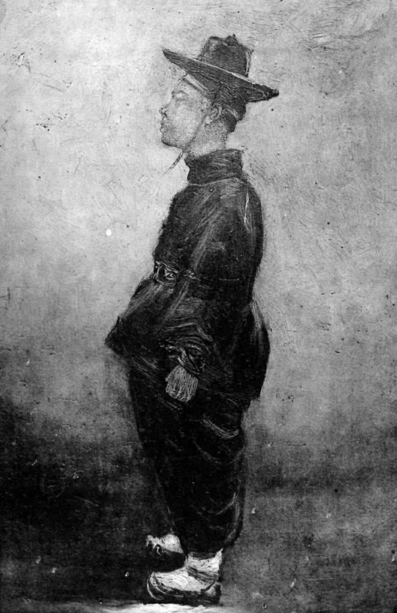 "No, I am not; and, if you like, I will tell you his story at luncheon." And surely what better time could be chosen for a "body-snatching" story than "luncheon." Meanwhile, however, I lost not my chance, and while conversing with somebody else, the snatcher found himself "snatched" in my sketch-book. It is not every day that one comes across such individuals! I went to speak to him, and I must confess that whether he had as a fact troubled the dead or not, he was none the less most courteous and polite with the living. He had, it is true, at times somewhat of a sinister look in his face; but for his unsteady eyes, you might almost have put him down as a missionary. He informed me that codfish was to be had in great abundance at Fusan, and that the grain export was almost entirely done by the Japanese, while the importation of miscellaneous articles was entirely in the hands of the Chinese.