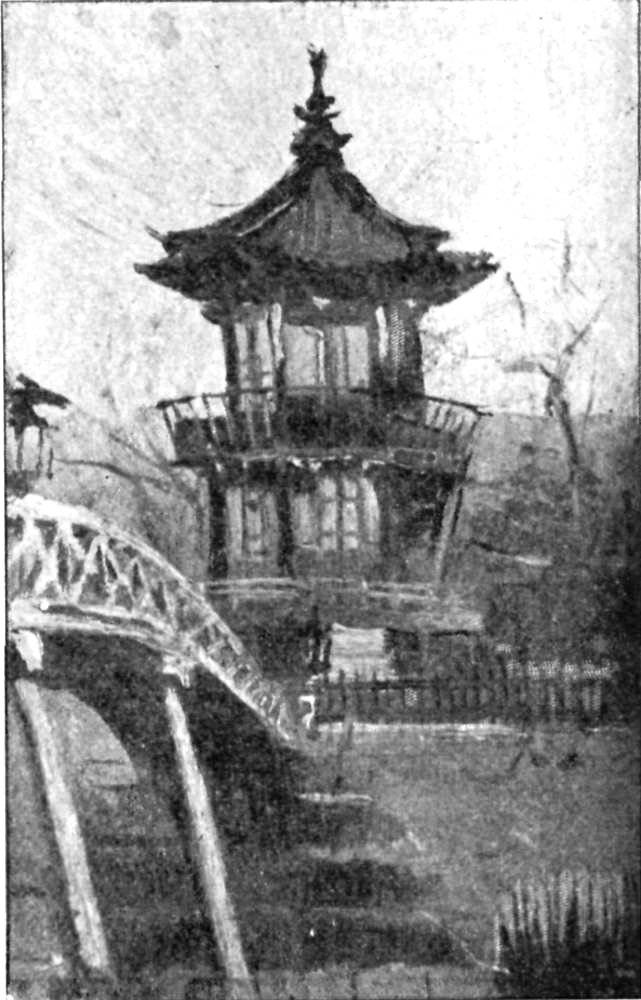 I walked up the main street. Great Scott! what a din! It was enough to drive anybody crazy. Each house, with its paper walls, hardly suitable for the climate, seemed to contain a regular pandemonium. Men and women were to be seen squatting on the ground round a huge brass hibachi, where a charcoal fire was blazing, singing and yelling and playing and clapping their hands to their hearts' content. They had lost somehow or other that look of gracefulness which is so characteristic of them in their own country, and on a closer examination I found the cause to be their being clad in at least a dozen kimonos,[2] put on one over the other to keep the cold out. Just picture to yourself any one wearing even half that number of coats, and you will doubtless agree with me that one's form would not be much improved thereby in appearance. The noise increased until New-Year's Eve, and when at last the New Year broke in upon them, it was something appalling. The air was full of false notes, vocal and otherwise, and I need scarcely say that at the "Dai butzu" also grand festivities went on for the greater part of the night.