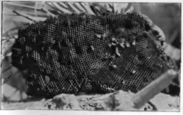 "A FEW OF THE HOMELESS BEES LIT ON THE COMB"