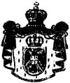 Décoration.—Un aigle debout à deux têtes, ayant les ailes à demi ouvertes et baissées, les serres tombantes et ouvertes, et sur la poitrine par devant un écusson ovale en émail rouge chargé d'une croix en émail blanc, avec un filet en or. Dans les coins de la croix se trouve un acier de briquet en or. Sur chaque tête de l'aigle une couronne royale; au-dessus de l'aigle est posée une couronne royale plus grande, reliée à l'aigle par un ruban d'émail bleu plié de manière à ce que les bouts finissent près des têtes de l'aigle. A la pointe de la couronne, se trouve un anneau pour passer le ruban. Sur le revers de la croix, le même écusson que sur le devant; il est encadré d'un pointillé en or, et le milieu de l'écusson porte les initiales M. I. en or, surmontées d'une couronne royale. Sur le revers du ruban bleu qui relie la couronne à l'aigle figure une inscription en caractères cyrilliques modernes: 22 février 1882.
