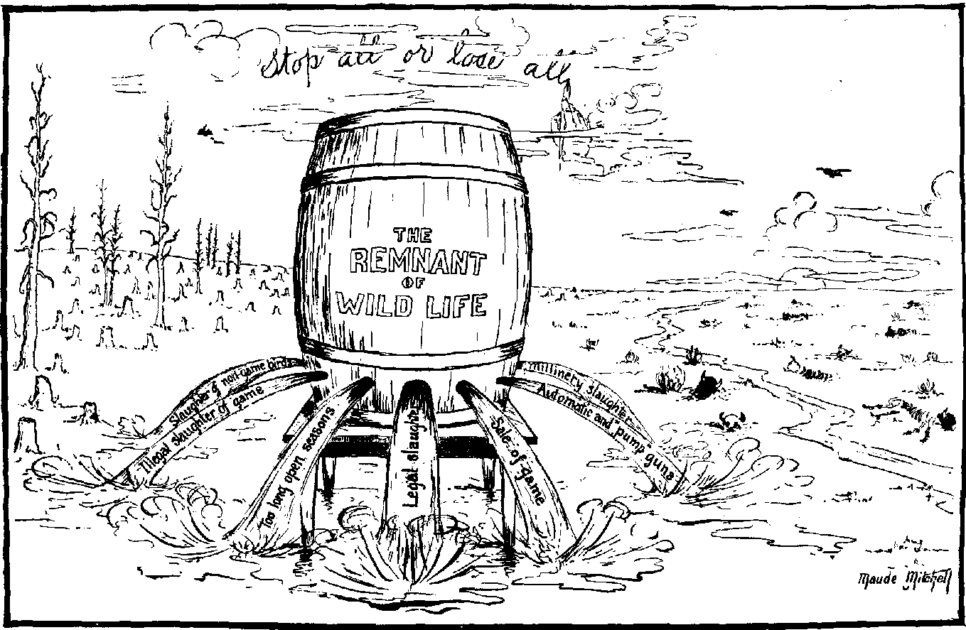 The time to discuss tiresome academic theories regarding "bag limits" and different "open seasons" as being sufficient to preserve the game, has gone by! We have reached the point where the alternatives are long closed seasons or a gameless continent; and we must choose one or the other, speedily. A continent without wild life is like a forest with no leaves on the trees.