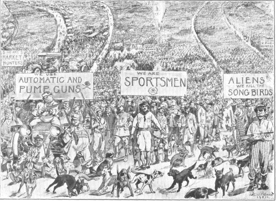 I have been a sportsman myself; but times have changed, and we must change also. When game was plentiful, I believed that it was right for men and boys to kill a limited amount of it for sport and for the table. But the old basis has been swept away by an Army of Destruction that now is almost beyond all control. We must awake, and arouse to the new situation, face it like men, and adjust our minds to the new conditions. The three million gunners of to-day must no longer expect or demand the same generous hunting privileges that were right for hunters fifty years ago, when game was fifty times as plentiful as it is now and there was only one killer for every fifty now in the field.
