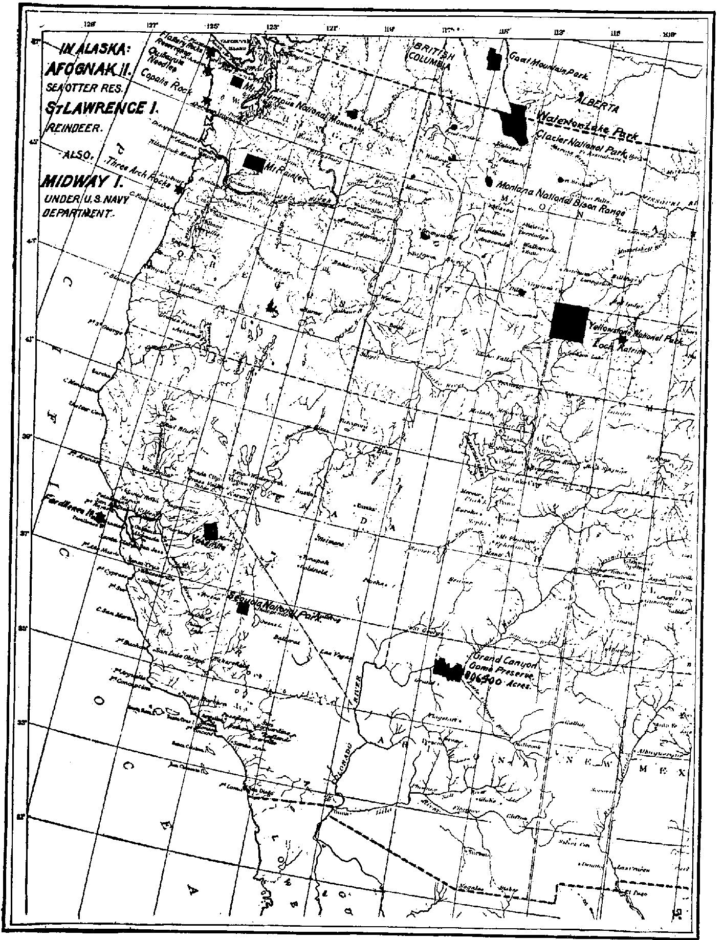 Travels through Europe, as well as over a large part of the North American continent, have convinced me that nowhere is Nature being destroyed so rapidly as in the United States. Except within our conservation areas, an earthly paradise is being turned into an earthly hades; and it is not savages nor primitive men who are doing this, but men and women who boast of their civilization. Air and water are polluted, rivers and streams serve as sewers and dumping grounds, forests are swept away and fishes are driven from the streams. Many birds are becoming extinct, and certain mammals are on the verge of [Page viii] extermination. Vulgar advertisements hide the landscape, and in all that disfigures the wonderful heritage of the beauty of Nature to-day, we Americans are in the lead.