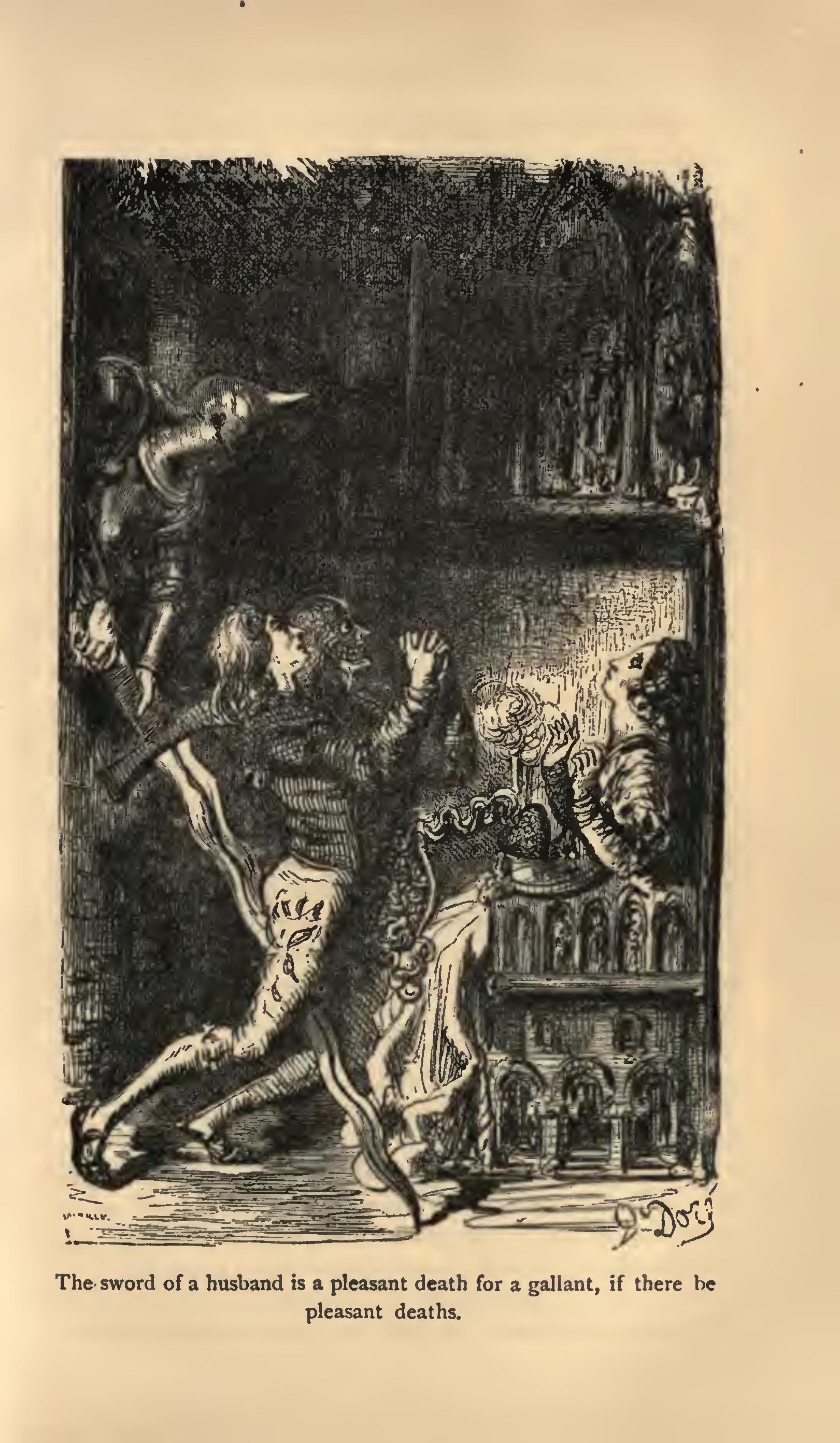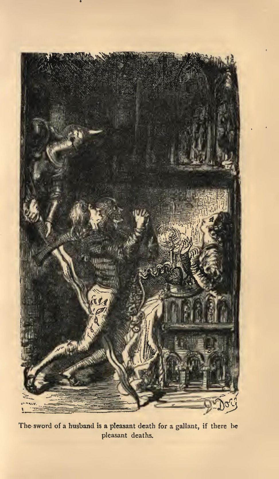 He taking him by the arm led him to the staircase, looked him in the white of the eye and said without any nonsense—“Ventredieu! You are a nice little fellow, and I should not like to have to let your master know the weight of your carcass. My revenge might cause me certain pious expenses in my old age, so choose to espouse an abbey for the remainder of your days, or to marry Madame to-night and die tomorrow.”