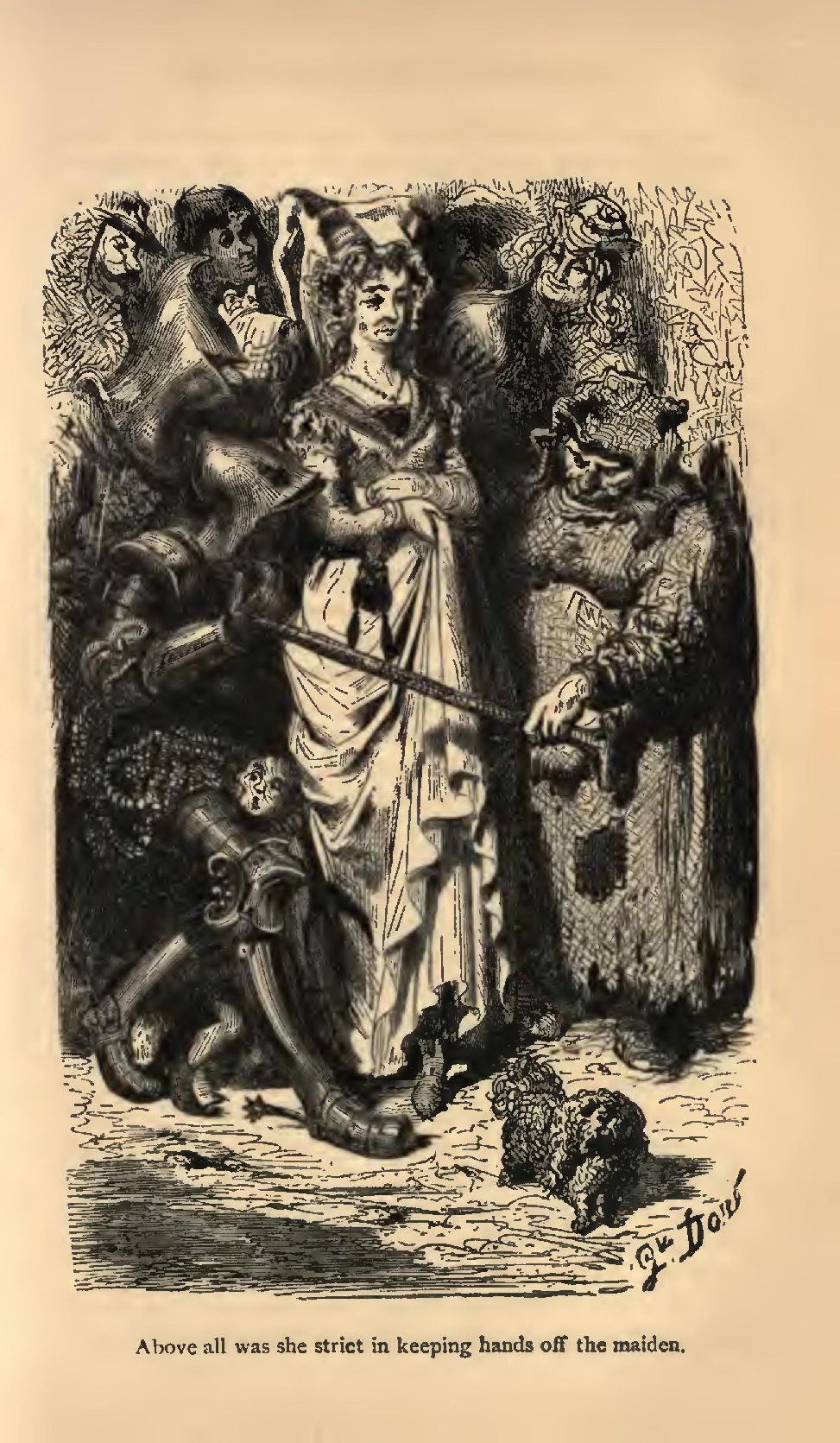 “Well then, be equal now before me, who am here below your goddess,” replied Imperia, “otherwise one of these days I will have you delicately strangled between the head and shoulders; I swear it by the power of my tonsure which is as good as the pope’s.” And wishing that the trout should be added to the feast as well as the sweets and other dainties, she added, cunningly, “Sit you down and drink with us.” But the artful minx, being up to a trick or two, gave the little one a wink which told him plainly not to mind the German, whom she would soon find a means to be rid of.
