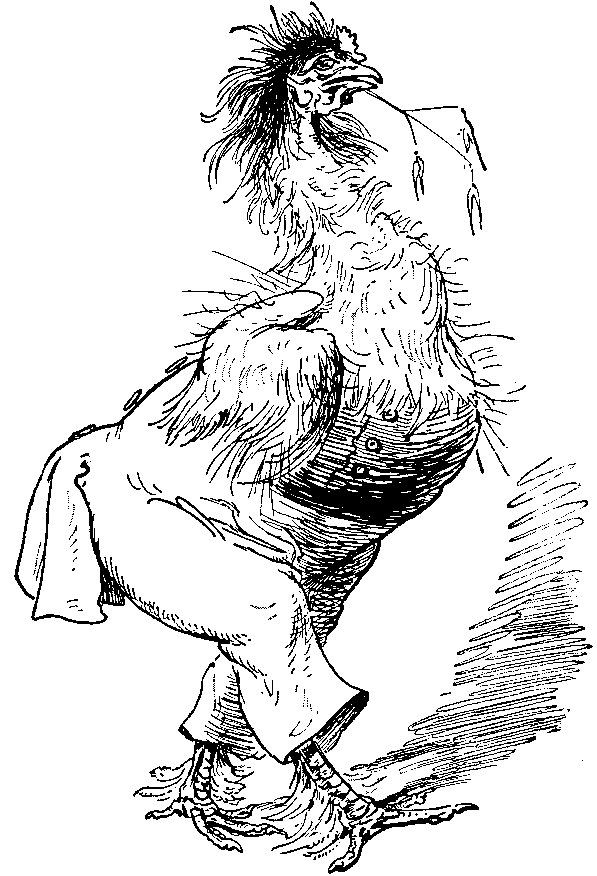 "Just imagine dressing up like that; she'll come along one of these days in a bathing suit," cried a young rooster who prided himself on his wit.