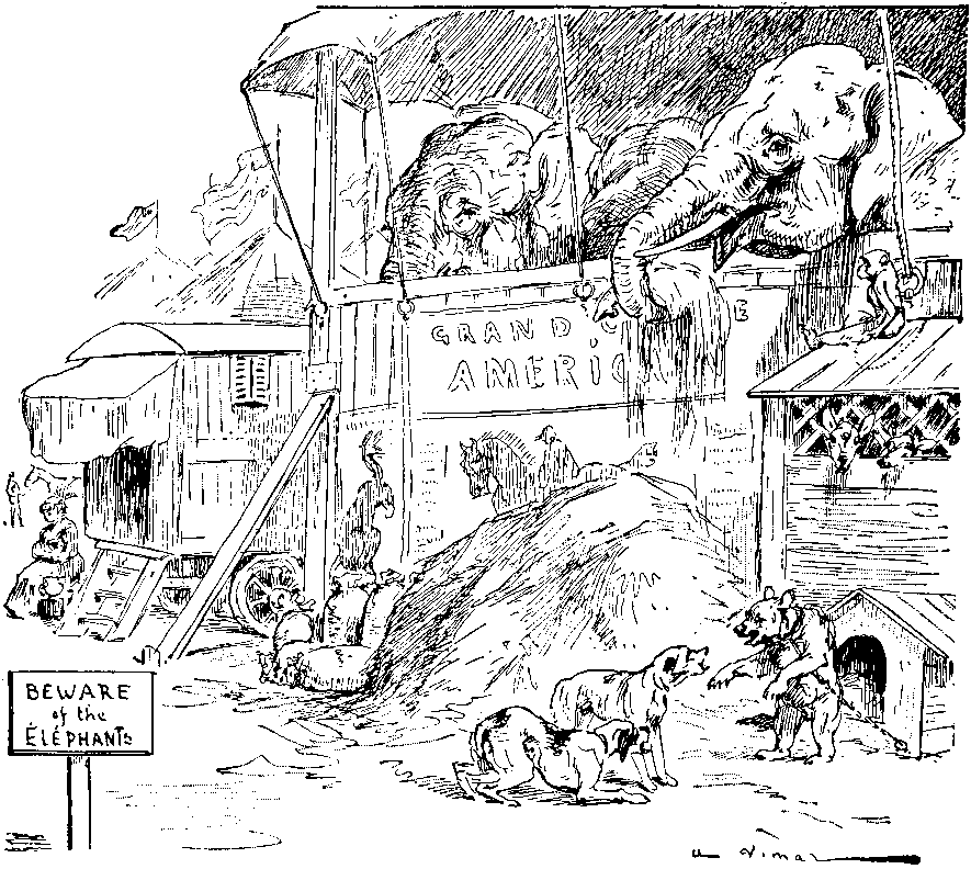 Meanwhile, Yollande was eating her heart out. She rushed to and fro, keeping her eyes glued on the disobedient ones. Suddenly she saw a mother-duck chasing her darlings. This was more than she could bear,—driven by her maternal instinct she leapt like a fury to the aid of her family.