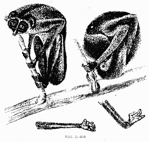 [pg 12]The only other quadrumanous animal found in Ceylon is the little loris121, which, from its sluggish movements, nocturnal habits, and consequent inaction during the day, has acquired the name of the "Ceylon Sloth."