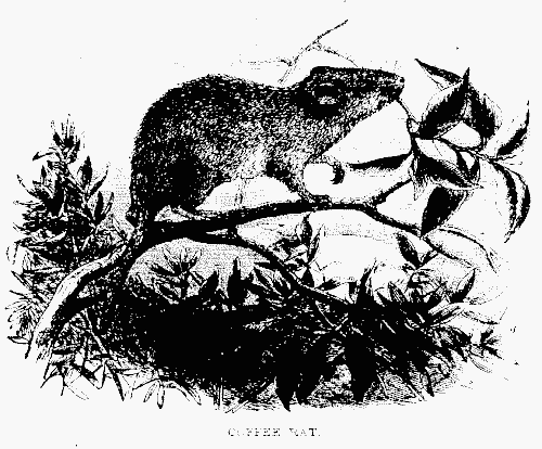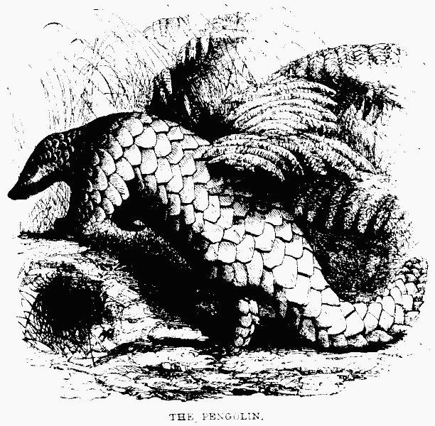 In size the body measures from ten to twelve inches in length, but the arms are prolonged, and especially the metacarpal bones and phalanges of the four fingers over which the leathery wings are distended, till the alar expanse measures between four and five feet. Whilst the function of these metamorphosed limbs in sustaining flight entitles them to the designation of "wings," they are endowed with another faculty, the existence of [pg 15] which essentially distinguishes them from the feathery wings of a bird, and vindicates the appropriateness of the term Cheiro-ptera151, or "winged hands," by which the bats are designated. Over the entire surface of the thin membrane of which they are formed, sentient nerves of the utmost delicacy are distributed, by means of which the animal is enabled during the darkness to direct its motions with security, avoiding objects against contact with which at such times its eyes and other senses would be insufficient to protect it.152 Spallanzani ascertained the perfection of this faculty by a series of cruel experiments, by which he demonstrated that bats, even after their eyes had been destroyed, and their external organs, of smell and hearing obliterated, were still enabled to direct their flight with unhesitating confidence, avoiding even threads suspended to intercept them. But after ascertaining the fact, Spallanzani was slow to arrive at its origin; and ascribed the surprising power to the existence of some sixth supplementary sense, the enjoyment of which was withheld from other animals. Cuvier, however, dissipated the obscurity by showing the seat of this extraordinary endowment to be in the wings, the superficies of which retains the exquisite sensitiveness to touch that is inherent in the palms of the human hand and the extremities of the fingers, as well as in the feet of some of the mammalia.153 The face and head of the Pteropus are covered with brownish-grey hairs, the neck and chest are dark ferruginous grey, and the rest of the body brown, inclining to black.