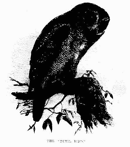 One tiny little bat, not much larger than the humble [pg 20] bee201, and of a glossy black colour, is sometimes to be seen about Colombo. It is so familiar and gentle that it will alight on the cloth during dinner, and manifests so little alarm that it seldom makes any effort to escape before a wine glass can be inverted to secure it.