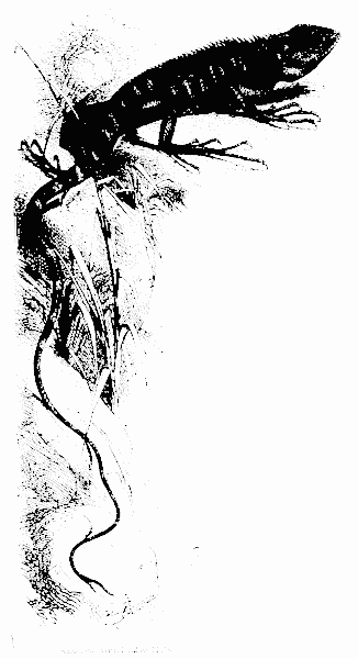 It moves, in fact, by rolling itself rapidly along, rotating like a wheel on the extremities of its spokes, or like the clown in a pantomime, hurling himself forward on hands and feet alternately. Its celerity is so great that Colonel Montague, who was one of the first to describe it minutely203, says its speed exceeds that of any known insect, and as its joints are so flexible as to yield in every direction (like what mechanics call a "ball and socket"), its motions are exceedingly grotesque as it tumbles through the fur of the bat.