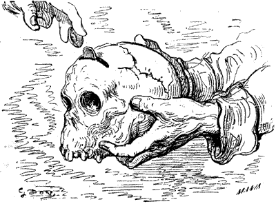 I had given back the skull, as Hamlet returns the skull of Yorick to the grave-digger, and was dusting my fingers with a handkerchief, as hundreds of Hamlets have dusted theirs. I said, "'Thrift, thrift, Horatio.'"