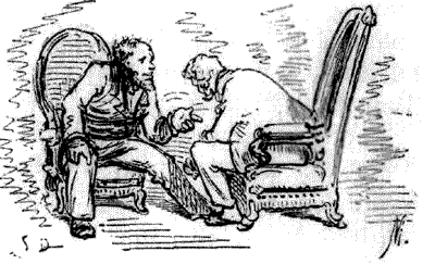 Next morning, at an early hour, I was interrupted by a knock, just as Charles had buttoned my gaiters and the young man from the perruquier's (who had stolen in with that air of delicacy and of almost literary refinement which belongs to his gentle profession) had lathered me. A nick he gave my chin at the shock made my countenance all argent and gules, and the visitor entering saw me thus emblazoned, while the barber and Charles, "like two wild men supporters of a shield," could only stare at the untimely apparition.