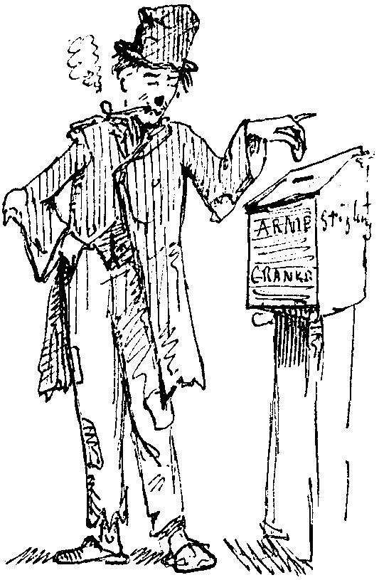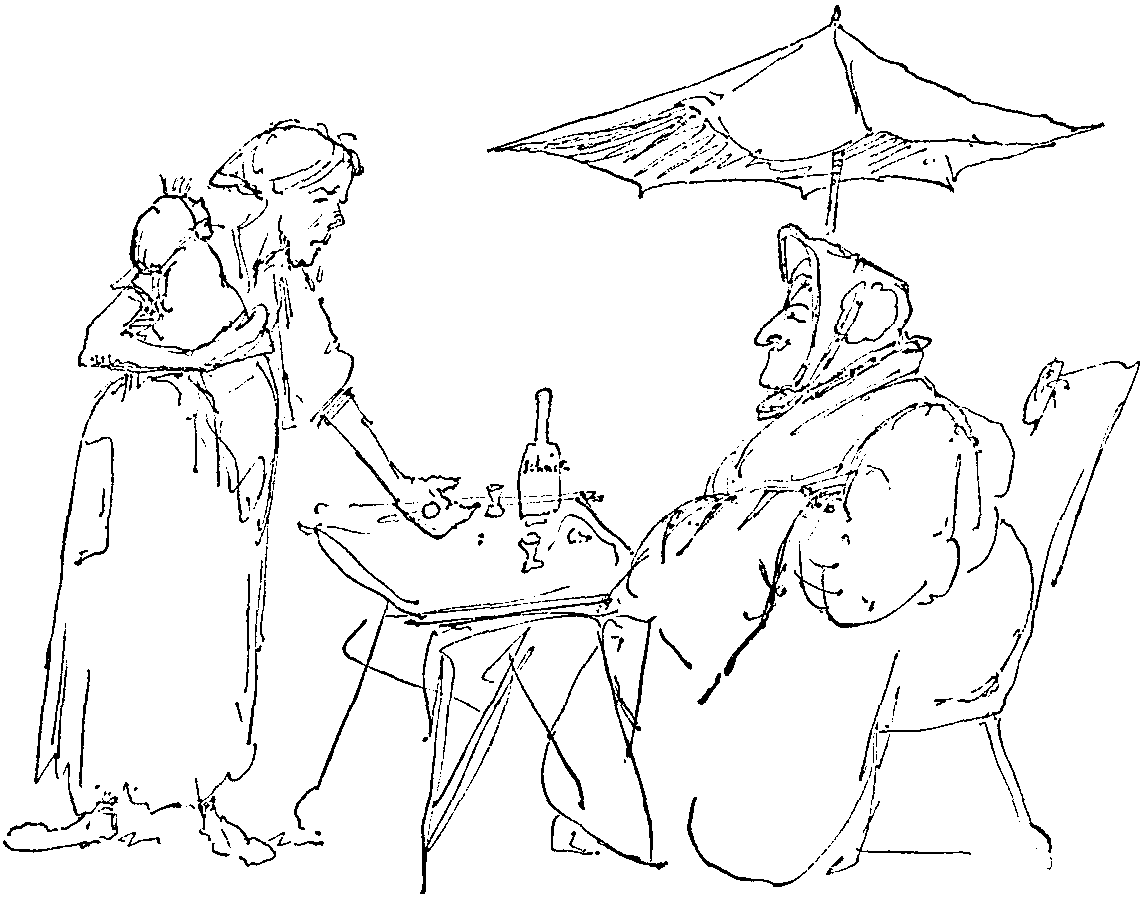 Stacey Marks, Poynter, Jimmy Whistler, and Charles Keene were among the crew, and others not so well known to fame. Pleasant hours those and gemüthliche, as the Germans say; how different the after-dinner clay pipe or cheap weed of those times to the post-prandial havannah we now complacently whiff at our friend's Mæcenas' hospitable table! Yes, things have changed, my dear Rag, since the day we were paying our bill, and you addressed the waiter with superb affability: "Here, Charles, is a penny for you. I know it isn't much, but I can't afford more."