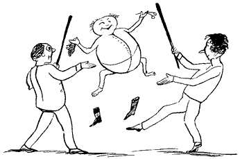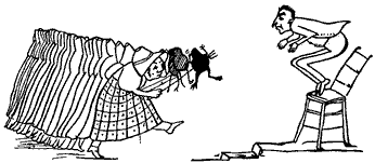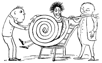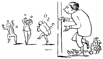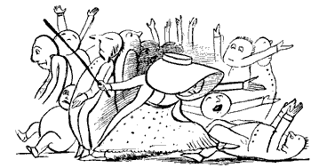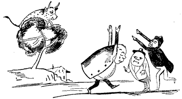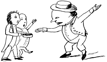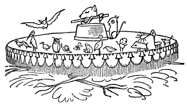 A noticeable feature about this first book, and one which we think is peculiar to it, is the harsh treatment which the eccentricities of the inhabitants of certain towns appear to have met with at the hands of their fellow-residents. No less than three people are "smashed,"—the Old Man of Whitehaven "who danced a quadrille with a Raven;" the Old Person of Buda; and the Old Man with a gong "who bumped at it all the day long," though in the last-named case we admit that there was considerable provocation. Before quitting the first "Nonsense-Book," we would point out that it contains one or two forms that are interesting; for instance, "scroobious," which we take to be a Portmanteau word, and "spickle-speckled," a favorite form of reduplication with Mr. Lear, and of which the best specimen occurs in his last book, "He tinkledy-binkledy-winkled the bell." The second book, published in 1871, shows Mr. Lear in the maturity of sweet desipience, and will perhaps remain the favorite volume of the four to grown-up readers. The nonsense-songs are all good, and "The Story of the Four little Children who went Round the World" is the most exquisite piece of imaginative absurdity that the present writer is acquainted with. But before coming to that, let us quote a few lines from "The Jumblies," who, as all the world knows, went to sea in a sieve:—