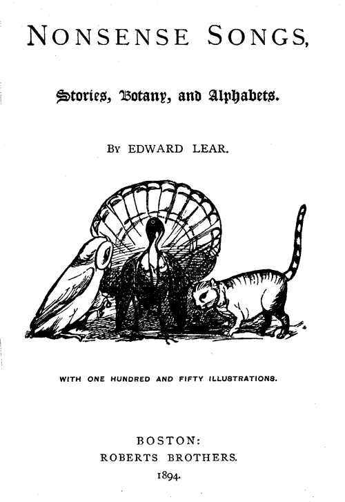 The first "Book of Nonsense" was published in 1846. Three other volumes,—"Nonsense Songs, Stories, etc.," published in 1871; "More Nonsense Pictures, etc.," in 1872; and "Laughable Lyrics: A Fresh Book of Nonsense, etc.," in 1877,—comprise all the "Nonsense Books" written by Mr. Lear.