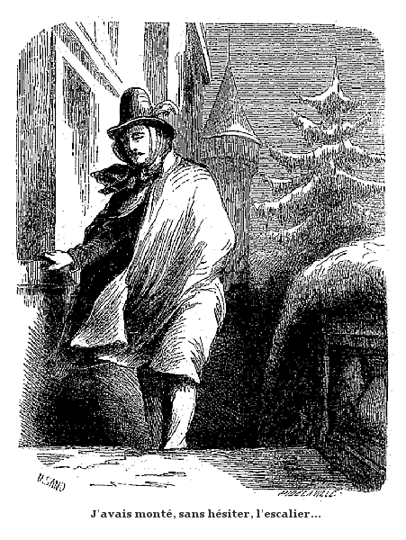 Un soir, nous allâmes ensemble au théâtre. Il y avait plusieurs jours que je ne l'avais vue. Elle avait été malade; du moins sa porte avait été fermée, et ses traits étaient légèrement altérés. Elle m'avait envoyé une place dans sa loge pour assister avec moi et un autre de ses amis, espèce de sigisbée insignifiant, au début d'un jeune homme dans un opéra italien.