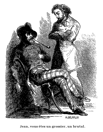 «J'avais alors l'esprit et le corps si affaibli, dit Laravinière en nous racontant son histoire, que je me laissai diriger comme le voulait mon bienfaiteur; et la peur de cet homme, admirable d'ailleurs, était si grande, qu'il n'attendit pas que je fusse transportable pour me conduire dans sa province. Il m'y laissa chez de bons paysans auvergnats, ses père et mère, qui m'ont tenu jusqu'à présent caché au fond de leurs montagnes, me soignant de leur mieux, me nourrissant fort mal, et me tourmentant beaucoup pour me faire confesser: car ils sont fort dévots, et mon état d'agonie continuelle leur donnait tous les jours à penser que le moment de rendre mes comptes était venu. Ce moment n'est pas éloigné; il ne faut pas vous faire illusion, mes chers amis, parce que vous me voyez sur mes jambes et assez fort pour donner la chasse à M. Horace Dumontet. Je suis frappe à fond, et sur toutes les coutures. J'ai deux balles dans la poitrine, et une vingtaine d'autres horions qui ne pardonnent pas. Mais j'ai voulu venir mourir sous le ciel gris de mon Paris bien-aimé, dans les bras de mes amis et de ma soeur Marthe. Me voilà bien content, habitué à souffrir, résolu à ne plus me soigner, enchanté d'avoir échappé à la confession, et tranquille pour le peu de temps qui me reste à vivre, puisque l'acte d'accusation des patriotes du 6 juin n'a pas fait mention de ma laide figure. Ah! dame! je ne suis pas embelli, ma pauvre Marthe, et vous ne devez plus craindre de tomber amoureuse de ce Jean que vous avez connu si beau, avec un teint si uni, une barbe si épaisse, et de si grands yeux noirs!»