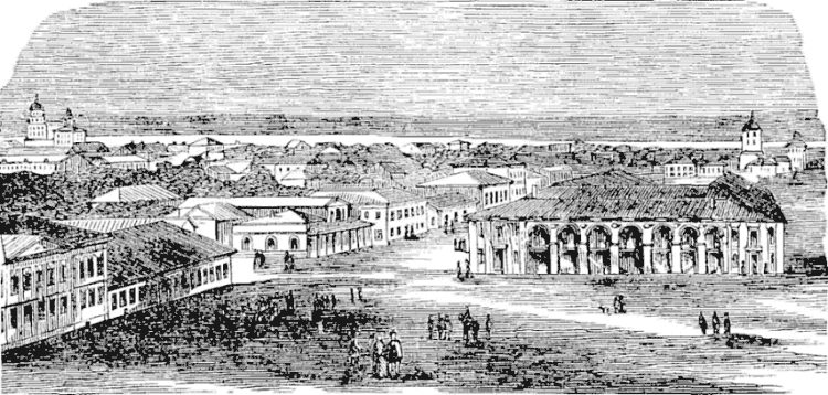 We drove through the fair grounds, which wore as empty of occupants as Goldsmith’s deserted village. It is laid out like a regular town or city, and most of its houses are substantially built. So much has been written about this commercial center that I will not attempt its description, especially as I was not there in fair season. The population of the town—ordinarily forty thousand—becomes three hundred thousand during the fair. More than half a million persons have visited the city in a single summer, and the value of goods sold or exchanged during each fair is about two hundred millions of roubles.