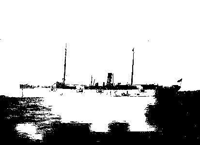 We caught our first view of the "Yankee" as we steamed past the cob dock at the yard. We were favorably impressed at once. She is a fine-looking ship, large, roomy, and comfortable, with lines which show that she is built for speed. As her record is twenty knots an hour, the latter promise is carried out. The "Yankee" was formerly the "El Norte," one of the Morgan Line's crack ships, and, when it was found necessary to increase the navy, she was purchased, together with other vessels of the same company, and ordered converted into an auxiliary cruiser. Gun mounts were placed in the cargo ports, beams strengthened, magazines inserted, and interior arrangements made to accommodate a large crew. The "Yankee's" tonnage is 4,695 tons; length, 408 feet; beam, 48 feet. The battery carried consists of ten five-inch quick-firing breechloaders, six six-pounders, and two Colt automatic guns. After events proved conclusively the efficiency of the "Yankee's" armament.