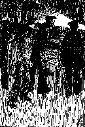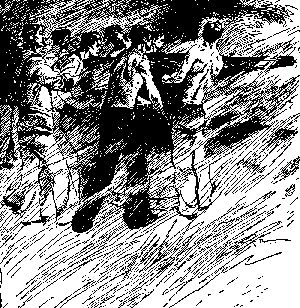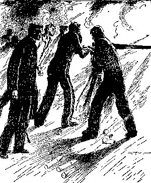 The Irish fireman attempted to wrench himself free, then he struck out at "Hod" with all the force of his right arm. The quarter-back's practice on the field came into play, and the college graduate tackled his opponent in the latest approved style. The struggle was short and decisive, and it resulted in Burke declaring his willingness to return to the ship.