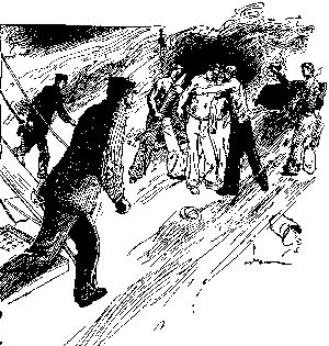 As he prepared to slip past the ship a sinewy hand was placed upon his shoulder, and another equally sinewy caught him by the collar.