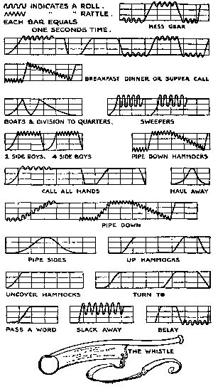 The whistle of the bosun's mate on watch echoed shrilly about the decks a few moments later.