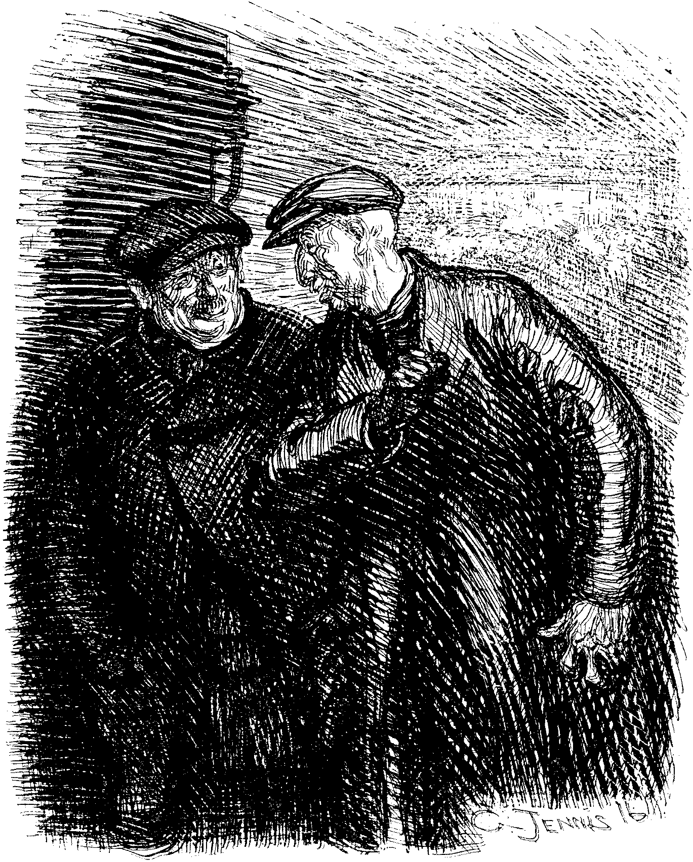 The lady pushed me aside, gripped Granby's arm and said affectionately, "'Ow you remind me of pore ole Jim in 'is best days afore 'e got jugged!"
