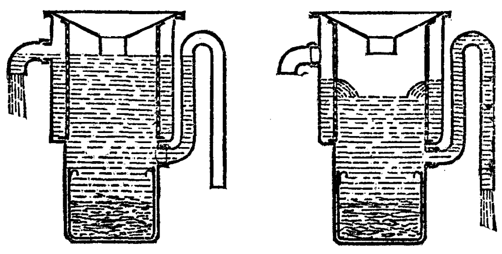 Spray injector.—Steam not superheated, being the most convenient for injecting the spray of liquid fuel into the furnace, it remains to be proved how far superheated steam or compressed air is really superior to ordinary saturated steam, taken from the highest point inside the boiler by a special internal pipe. In using several systems of spray injectors for locomotives, the author invariably noticed the impossibility of preventing leakage of tubes, accumulation of soot, and inequality of heating of the fire box. The work of a locomotive boiler is very different from that of a marine or stationary boiler, owing to the frequent changes of gradient on the line, and the frequent stoppages at stations. These conditions render firing with petroleum very difficult; and were it not for the part played by properly arranged brickwork inside the fire box, the spray jet alone would be quite inadequate. Hitherto the efforts of engineers have been mainly directed toward arriving at the best kind of "spray injector," for so minutely subdividing a jet of petroleum into a fine spray, by the aid of steam or compressed air, as to render it inflammable and of easy ignition. For this object nearly all the known spray injectors have very long and narrow orifices for petroleum as well as for steam; the width of the orifices does not exceed from ½ mm. to 2 mm. or 0.02 in. to 0.08 in., and in many instances is capable of adjustment. With such narrow orifices it is clear that any small solid particles which may find their way into the spray injector along with the petroleum will foul the nozzle and check the fire. Hence in many of the steamboats on the Caspian Sea, although a single spray injector suffices for one furnace, two are used, in order that when one gets fouled the other may still work; but, of course, the fouled orifices require incessant cleaning out.