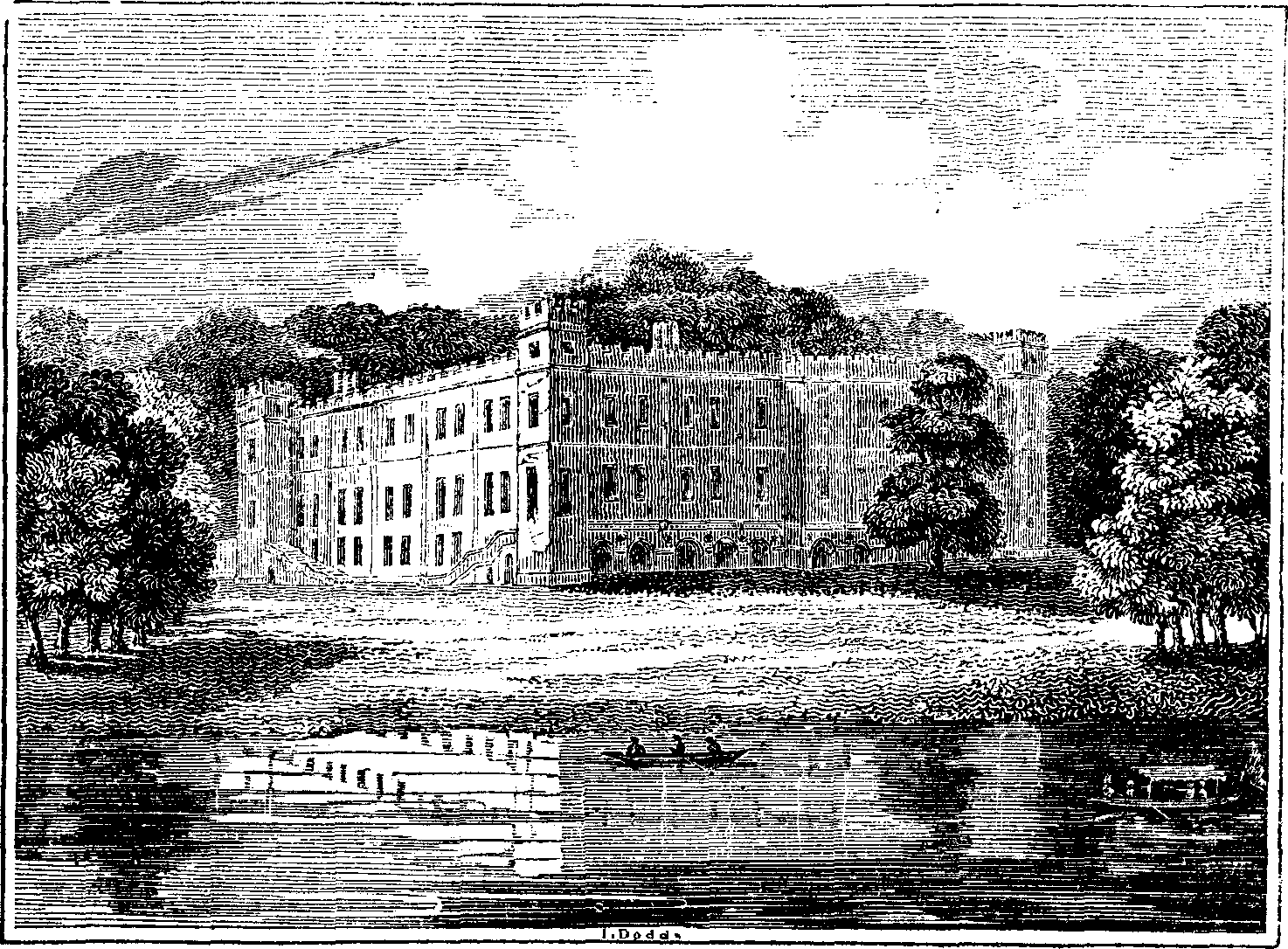 After the dissolution of this convent, in 1532, it continued in the crown during the remainder of Henry's reign; and the King confined here his unfortunate Queen, Catherine Howard, from November 14, 1541, to February 10, 1542, being three days before her execution. Edward VI. granted it to his uncle, the Duke of Somerset, who, in 1547, began to build this spacious structure, and finished the shell of it nearly as it now remains. The house is a majestic edifice of white stone, built in a quadrangular form, with a flat and embattled roof, with a square turret at each of the outward angles. In the centre is an enclosed area, now laid out as a flower garden. The gardens were originally enclosed by high walls before the east and west fronts, so as to exclude all prospect; but the Protector, [pg 162] to remedy this inconvenience, built a high terrace in the angle between the walls of the two gardens. After his execution, in 1552, Sion was forfeited; and the house, which was given to John, Duke of Northumberland, then became the residence of his son, Lord Guildford Dudley, and of his daughter-in-law, the unfortunate Lady Jane Grey, who resided at this place when the Duke of Northumberland and Suffolk, and her husband, came to prevail upon her to accept the fatal present of the crown. The duke being beheaded in 1553, Sion House reverted to the crown. Queen Mary restored it to the Bridgetines, who possessed it till they were finally expelled by Elizabeth. In 1604, Sion House was granted to Henry Percy, ninth Earl of Northumberland, in consideration of his eminent services. His son, Algernon, employed Inigo Jones to new face the inner court, and to finish the great hall in the manner in which it now appears. In 1682, Charles, Duke of Somerset, by his marriage with the only child of Joceline, Earl of Northumberland, became possessed of Sion House: he lent the mansion to the Princess Anne, who resided here during the misunderstanding between her and Queen Mary. Upon the duke's death, in 1748, his son, Algernon, gave Sion House to Sir Hugh and Lady Elizabeth Smithson, his son-in-law and daughter, afterwards Duke and Duchess of Northumberland, who made many fine improvements here, under the direction of Robert Adam, Esq. The late duke (who distinguished himself at the battle of Bunker's Hill) passed the principal part of his time at this seat; and here, also, he died, in the year 1815. The present duke has expended immense sums in the improvement of the mansion, grounds, and gardens.