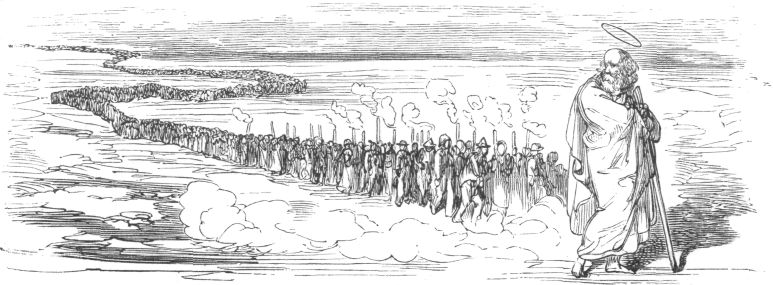 These ugly reminiscences were not so much the cause of a prejudice I took against Noisy, as caused by it. At Noisy I was in the full domain of my ancient foe the railway, where two lines of the Eastern road separate—the Ligne de Meaux and the Ligne de Mulhouse. The sight of the unhappy second-class passengers powdered with dust, and of the frantic nurses who had mistaken their line, and who madly endeavored to leap across to the other train, stirred all my bile. It was on this current of thought that the nobleman who had been hung and the cardinal who had pined in a cage were borne upon my memory. "Small choice," said I, "whether the bars are perpendicular or horizontal. You lose your independence about equally by either monopoly."