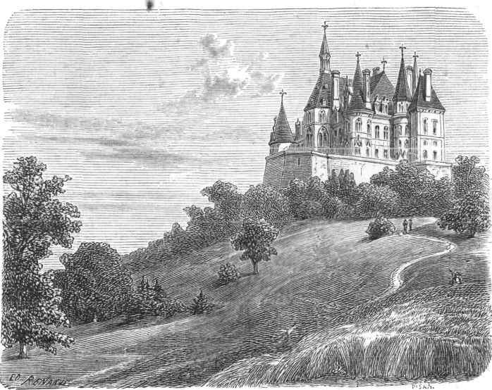 From the car-window, as in a panorama of Banvard's, the landscape spun out before my eyes. Le Raincy, which I had intended to visit at all events on the same day, but afoot, offered me the roofs of its ancient château, a pile built in the most pompous spirit of the Renaissance, and whose alternately round and square pavilions, tipped with steep mansards, I was fain to people with throngs of gay visitors in the costume of the grand siècle. Then came the cathedral of Meaux, before which I reverently took off my cap to salute the great Bossuet—"Eagle of Meaux," as they justly called him, and on the whole a noble [pg 254] bird, notwithstanding that he sang his Te Deum over some exceedingly questionable battle-grounds. Then there presented itself a monument at which my engineering friend clapped his hands. It was a crown of buildings with extinguisher roofs encircling the brow of a hill, and presenting the antique appearance of some chastel of the Middle Ages.