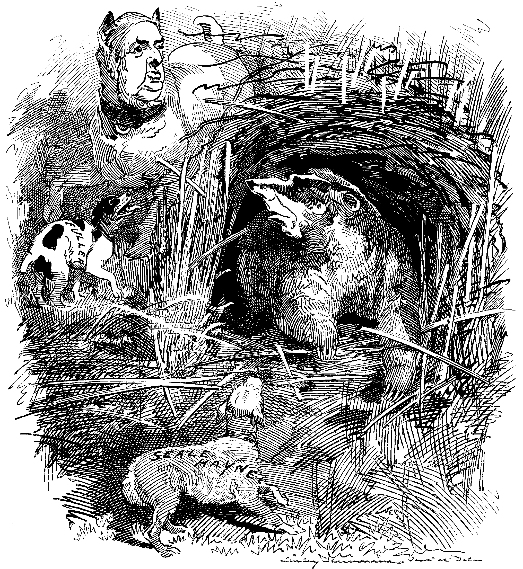 That great new authority on Natural History, Mr. G.A. HENTY (author of Those Other Animals), should be able to tell us much about the Badger. Therewith he would be able, in his own favourite fashion, to "point a moral" (against the Demogorgon Democracy), and "adorn a tale" (of laboured waggery). He might find the subject as suggestive of sardonic chaff as American women and Republican institutions.