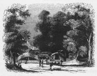 I would have you look very attentively at the contributions from India, they are so gorgeous; such superb muslins, baskets, and fans; with silks, cotton, cocoa-nuts, roots, woods, and such tempting fruits. I always like to see Indian articles, they are so magnificent. The persons who have sent these things must have worked very hard, to make so many beautiful specimens; but then the poorer people of India are exceedingly industrious; they live very simply, eating rice, boiled with milk and spices, as their principal food, for it is against their religion to touch meat of any kind. They would lead rather a sorry life, were it not that their tastes were so extremely simple, and their wants so few. A Hindoo village looks more like a gipsy encampment, than anything else, and bears a very strange appearance to a European, at first.