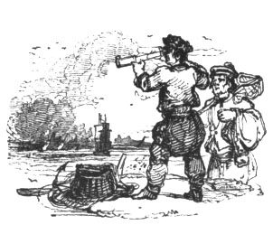 The Dutch people are industrious, and cleanly. The women are the most active and nicest house-wives in the world; they scour and brighten, and rub not only the furniture and inside of their houses, but the outside as well; the houses in Holland, by-the-bye, look like painted baby-houses, and are roofed with glossy delft tiles, and the rooms are lined with smooth square tiles of delft, and the floors paved with marble. The people are never idle in Holland, but are always working at a great variety of manufactures, among which are leather, woollen, and linen articles,—also, paper, wax, starch, pottery, and tiles. Large quantities of gin are likewise made, and this liquor is in England called "Hollands" for that reason. Carts are not much used by the Dutch; their goods are carried on sledges, very light waggons, and boats. The reason of this is, that they are afraid lest the wheels of vehicles should injure the foundations of their cities, which are generally built on piles of huge trees, driven like stakes into the bog beneath. The common people are very humane to their cattle; they rub down the cows and oxen, and keep them as clean and sleek as our English horses. Canals run through the principal streets, and in winter they are frozen over for two or three months, when the whole country is like a fair; booths are erected upon the ice, with fires in them. The country people skate to market, with milk and vegetables; and every kind of sport is seen on the frozen canals. Sledges fly from one street to another, gaily decorated, and numberless skaters glide about with astonishing swiftness and dexterity. No people skate so well as the Dutch.