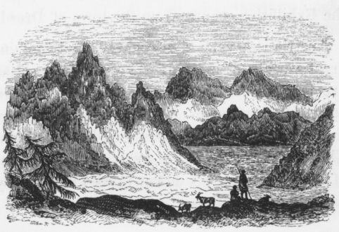 Between the summits of the highest of the mountains are valleys of ice, frozen into many fantastic shapes, formed by one crust of ice growing hard over another; but what is more extraordinary, is that the borders of these glaciers, as they are called, are fertile: strawberries, wild cherries, nuts, barberries, and mulberries, grow there; and goats browse on the most inaccessible parts of the rocks, and bound with the most surprising agility from one cliff to another.