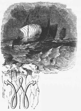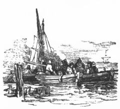 The Italians are very handsome, and have jet black hair, dark roguish eyes, and fine figures. The dress of the lower orders is even prettier than the pretty Spanish costume. The men wear high-crowned hats, such as you may sometimes have seen on the organ-grinders in the streets of London, velveteen jackets, gaiters, and open shirt-collars, loosely fastened by a silk ribbon; while the women have short scarlet petticoats, and jackets of a darker colour, with exceedingly short sleeves, tied with bright ribbon, and their long black hair decorated with coloured bows of ribbon, and confined by a silk lace net, which falls partly over their shoulders. Instead of sending thieves to prison in Italy, they are sent on board the galleys, a large kind of rowing vessels, where they are chained to the decks, and obliged to endure every species of hardship.