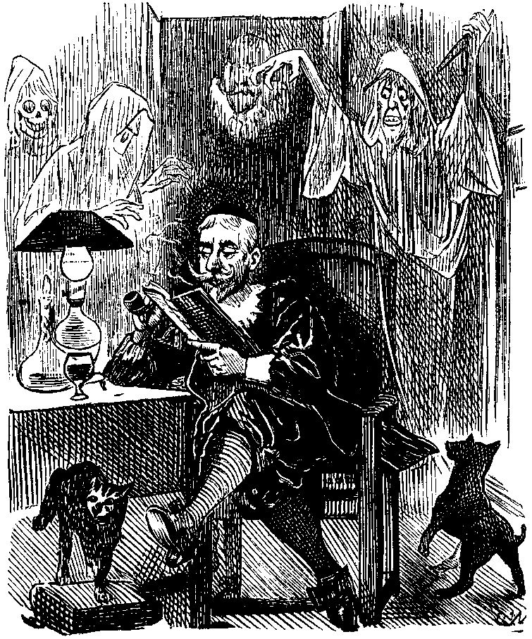 I now proceed, therefore, to carry out my intention, and, as usual, I address myself to the fountain head. My dear VANITY, I never shall understand why you take so much trouble to get hold of men. They are not a pleasing sight when you have got them, and after a time it must cease to amuse even you to see yourself reproduced over and over again, and in innumerable ridiculous ways. For instance, there is Dr. PEAGAM, the celebrated author of Indo-Hebraic Fairy Tales: a new Theory of their Rise and Development, with an Excursus on an Early Aryan Version of "Three Blind Mice." Dr. PEAGAM is learned; he has the industry of a beaver; he is a correspondent of goodness knows how many foreign philosophical, philological, and mythological societies; his record of University distinctions has never been equalled; his advice has been sought by German Professors. Yet he carries all this weight of celebrity and learning as lightly as if it were a wideawake, and seems to think nothing of it. But he has his weak point, and, like Achilles, he has it in his feet.