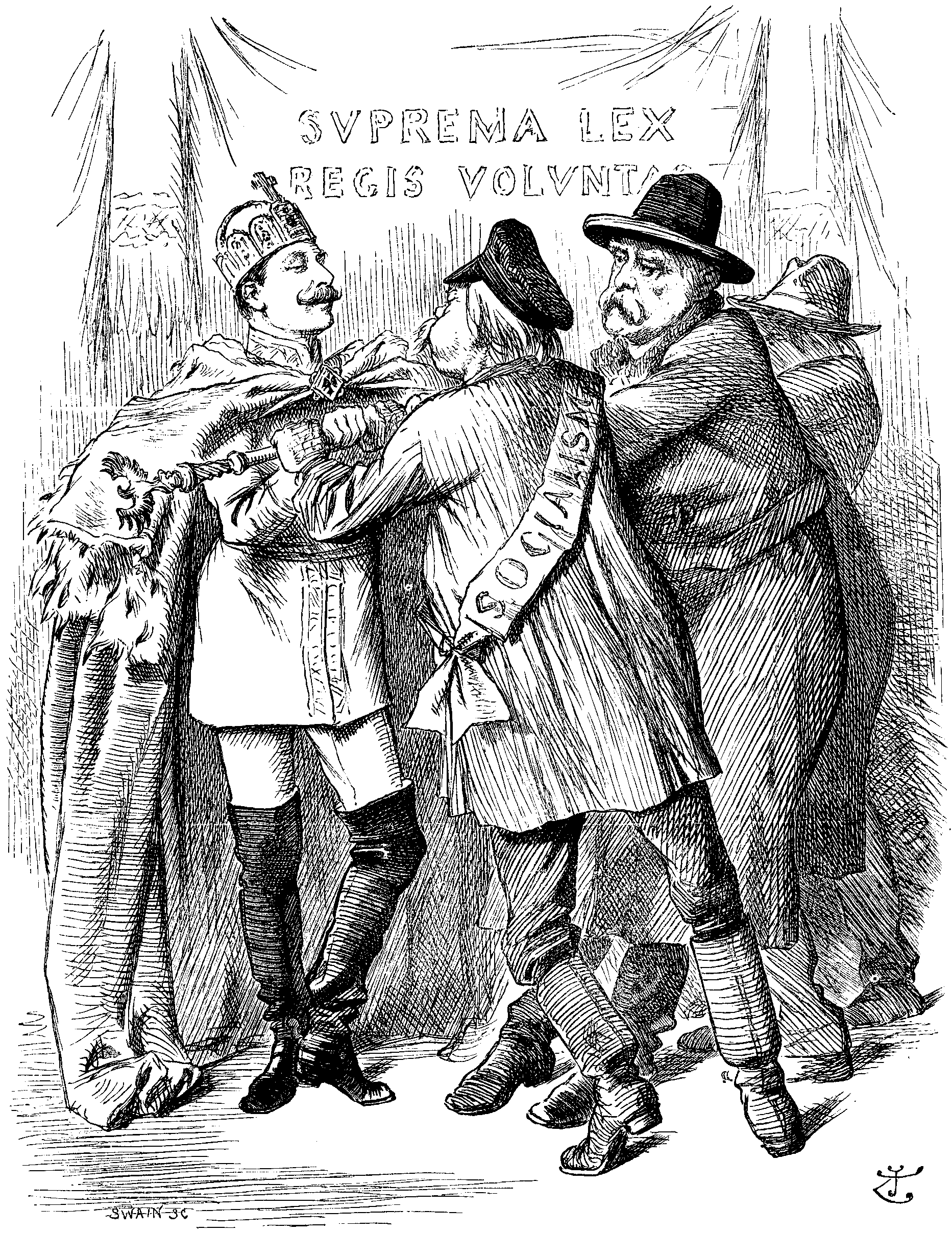 But oh, the huge, distorted, overweening conceit of the man! I have seen him lying full length on a couch, waving a scented handkerchief amongst a crowd of submissive women, who were grovelling round him, while he enlarged in his own pet jargon on the surpassing merits of his latest unpublished essay, or pointed out the beauties of the trifling pictures which were the products of his ineffective brush. He will never accomplish anything, and yet to the end of his life, I fancy, he will have his circle of toadies and flatterers who will pretend to accept him as the evangelist of a glorious literary and artistic gospel. For unfortunately he is as rich as he is impudent and incompetent. And when he drives out in a Hansom he never ceases to simper at his reflected image in the little corner looking-glasses, by means of which modern cab-proprietors pander to the weakness of men. Such is your handiwork, my excellent VANITY. Are you proud of it?