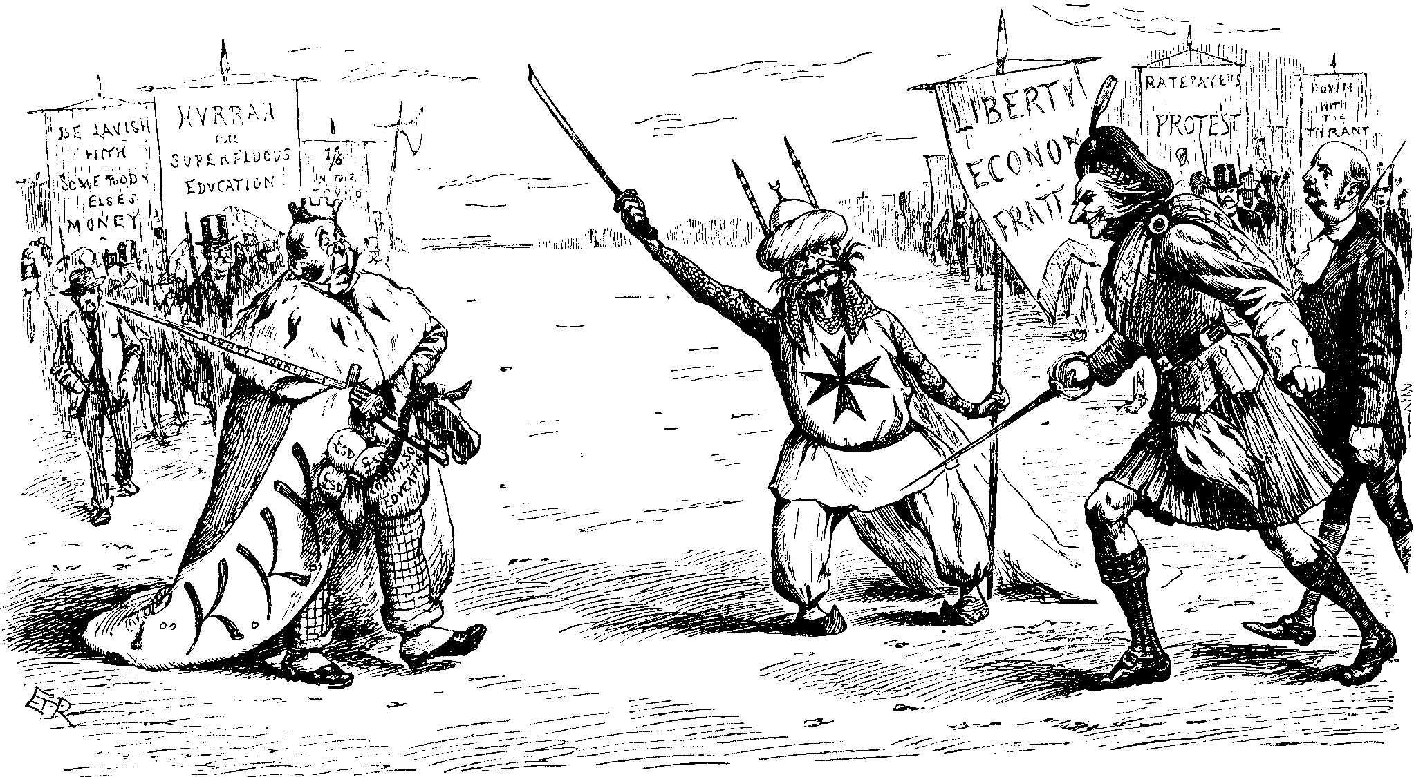 And, hoarse with indignation, rings the answer, "Not Content!"