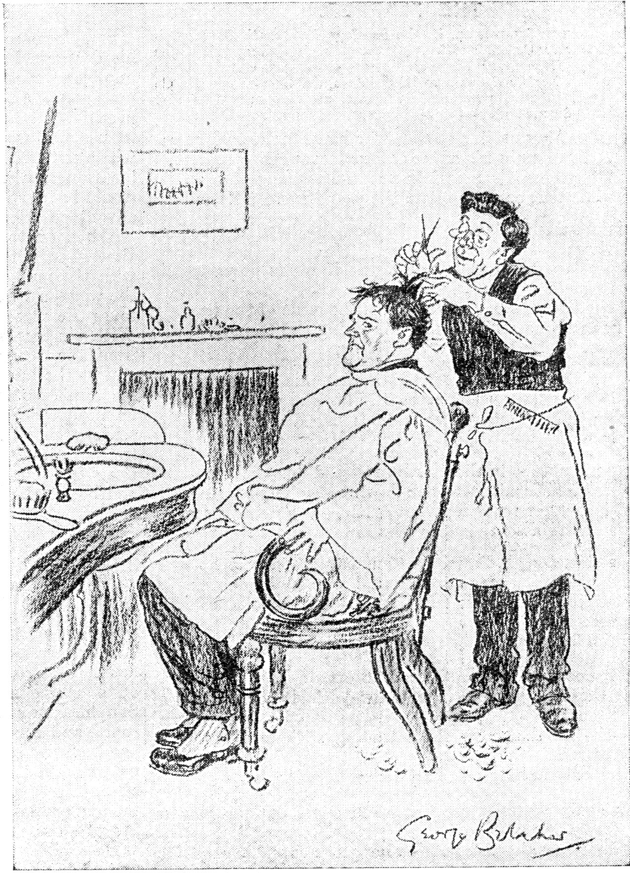 New Assistant (his first operation). "EXACTLY, SIR. ALL THE SAME, IF ANYBODY HAD TOLD ME TWO DAYS AGO THAT I SHOULD NOW BE CUTTING THE HAIR OF A COMPLETE STRANGER, I'D NEVER HAVE BELIEVED 'IM."